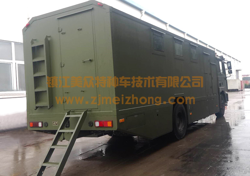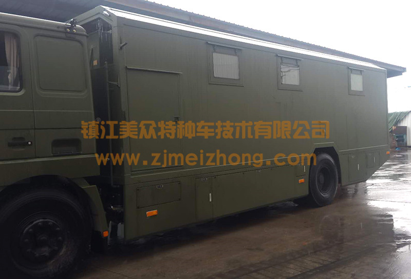 生活保障車上設置了電氣裝置(移動電源)、空調裝置、供水裝置、照明裝置、影視裝置、能夠適應高溫或低溫惡劣環(huán)境,適應在野外無補給依托情況下從事軍事、勘探、科技試驗的生存環(huán)境。